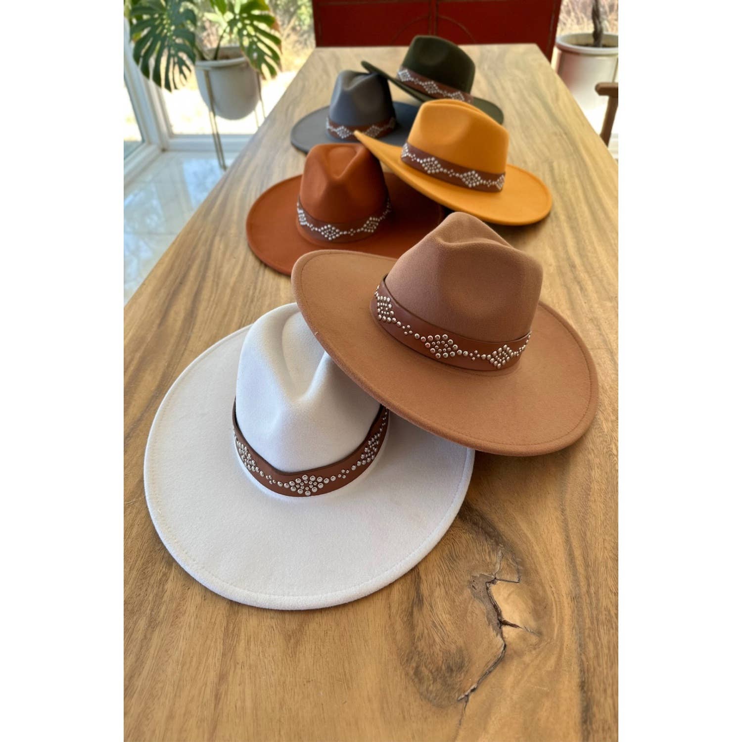 🌾 Wide Brim Boater Hat — Faux Felt Finish, 4" Flat Brim 📝 Description (with emojis): A timeless, structured boater crafted in soft faux felt 🤍. Featuring a flat, wide 4" brim for sun coverage and statement style. The adjustable inner drawstring ensures a snug, custom fit 🎀— perfect for elevated everyday wear or boutique displays. 🧢 Material: Vegan felt (polyester blend) 📏 Brim: 4" (flat and stiff) 🔧 Fit: Adjustable inner drawstring (fits 57–59 cm) 🌞 Style: Structured and bold, perfect for sunny days ✨ Finish: Smooth, luxe texture with firm shape retention ✨ Clean lines and bold silhouette — made to turn heads.