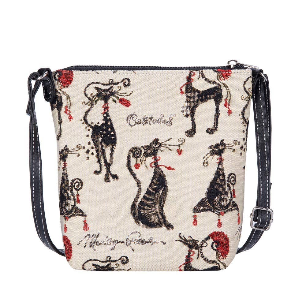 FABRIC COMPOSITION: 100% Polyester. EASY CARE: Clean it with a damp cloth. Do not soak in water. Enjoy your day with branded sling bags by Signare. [custom_html]UNIQUE LIFESTYLE DESIGN: This elegant rose pattern is based on the work of Charles Rennie Mackintosh, the Scottish artist, designer and architect. Well known for combining a progressive modernity with the spirit of romanticism, this simple rose design perfectly captures everything we love about Mackintosh art. With blood-red roses climbing vertically, some in full bloom, some still in bud, with their stems entwined, this is one of our favorite Rennie Mackintosh designs. PRODUCT DESCRIPTION: If you fancy a very casual and compact bag, this tapestry fabric sling bag is for you. * It is ideal for holding your travel documents when on holiday * Wear it on its own or as an add-on to your other handbag * Fastened with a zip top to protect your goods * Webbing strap is adjustable and promotes comfortable travel. * Features an inside slip pocket and lined with a patterned nylon * Can be worn across the body or on your shoulder * These fashionable sling bags are made from Signare tapestry woven fabrics * Size approx. W 6.1 x H 7.5 x D 2.5 inches - Weight 0.3 lb [/custom_html]