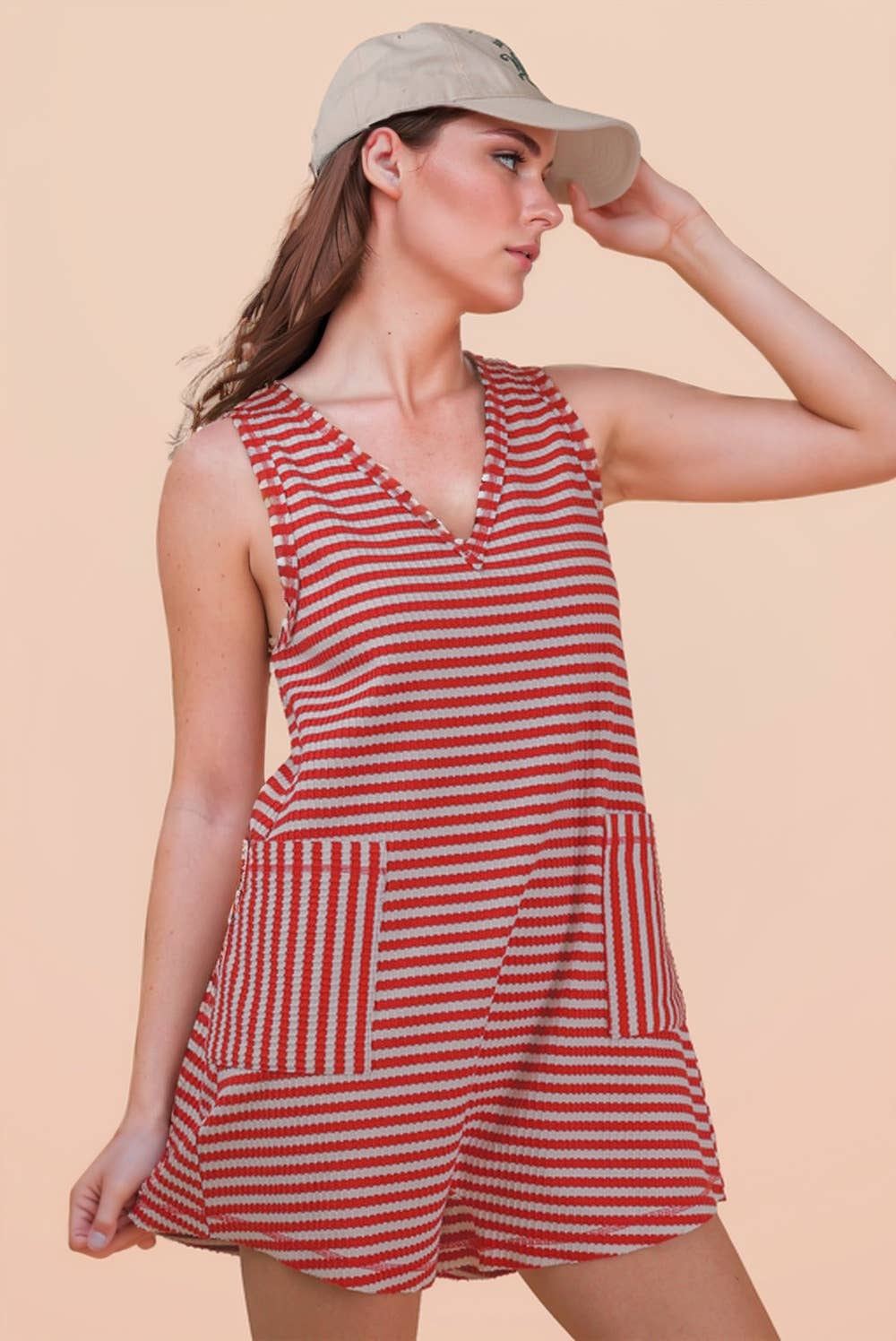 Wholesale 2026 Summer Striped v-Neck Sleeveless One-piece Shorts