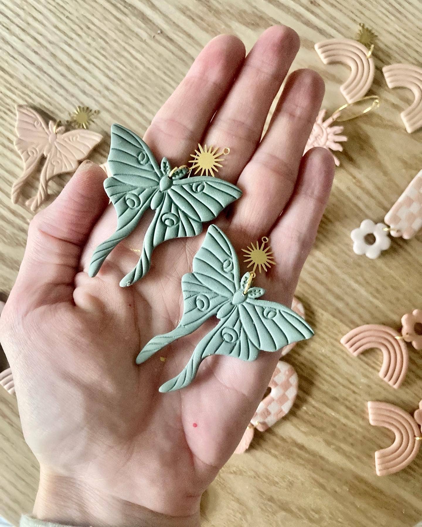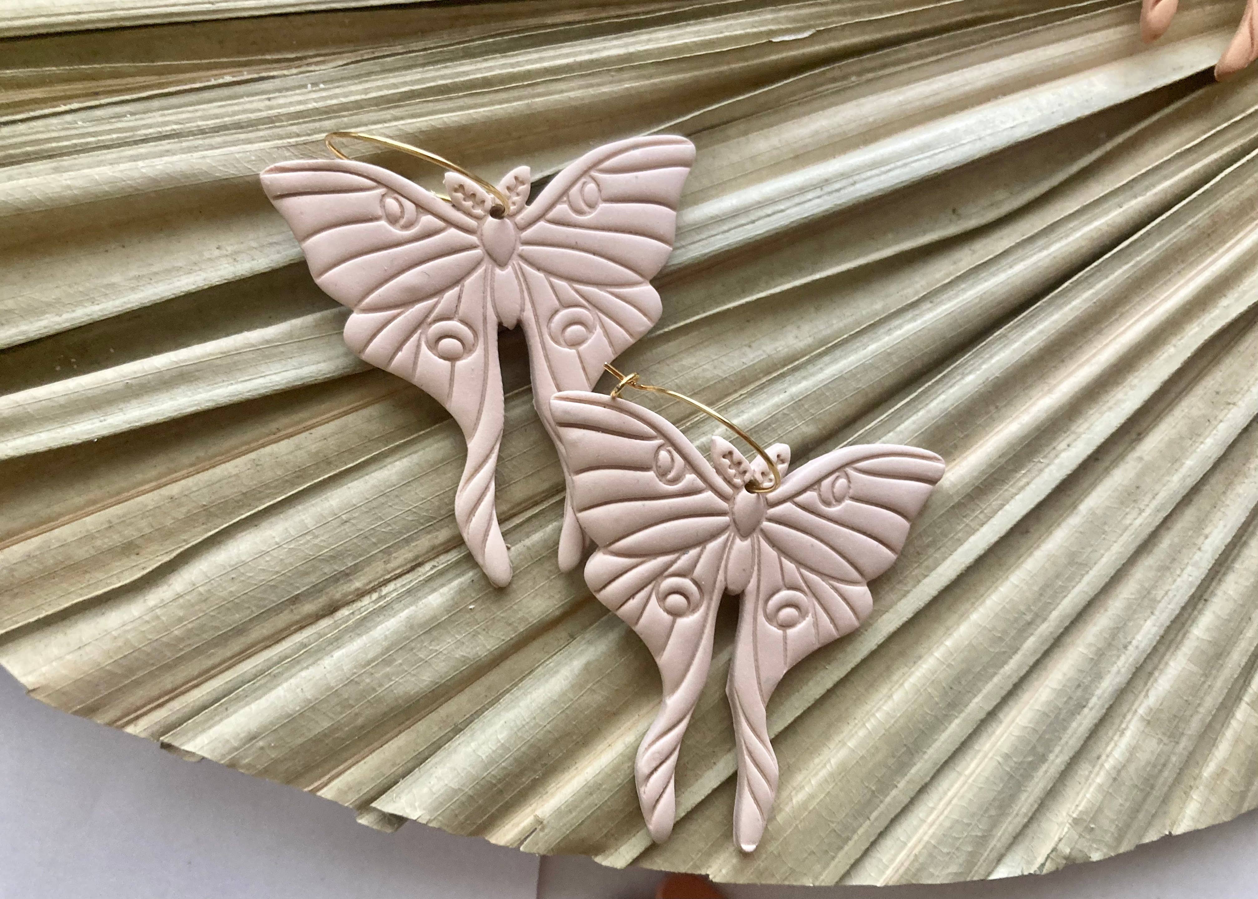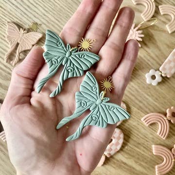 Embrace your free-spirited style with Terra Made's Moth Clay Earrings. These earrings are handcrafted into a detailed moth shape, giving each piece its own unique character. The boho vibe of these dangle earrings is perfect for those seeking a touch of statement, quality, and vibrance in their accessories. Remember, no two products are the same, each a testament to Terra Made's dedication to creating from the heart.