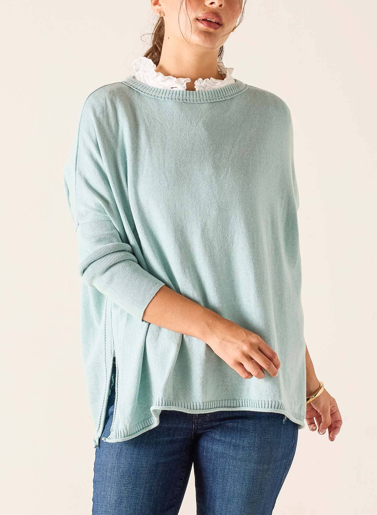 MELANGE LOOSE FIT CROP SHORT SLEEV SWEATER TOP - SOFT TEXTURED MELANGE SWEATER - RELAXED BOXY FIT - DROPPED SHOULDERS - SHORT WIDE SLEEVES - CROPPED LENGTH Fabric Contents 74%VISCOSE 22%POLYESTER 4%NYLON