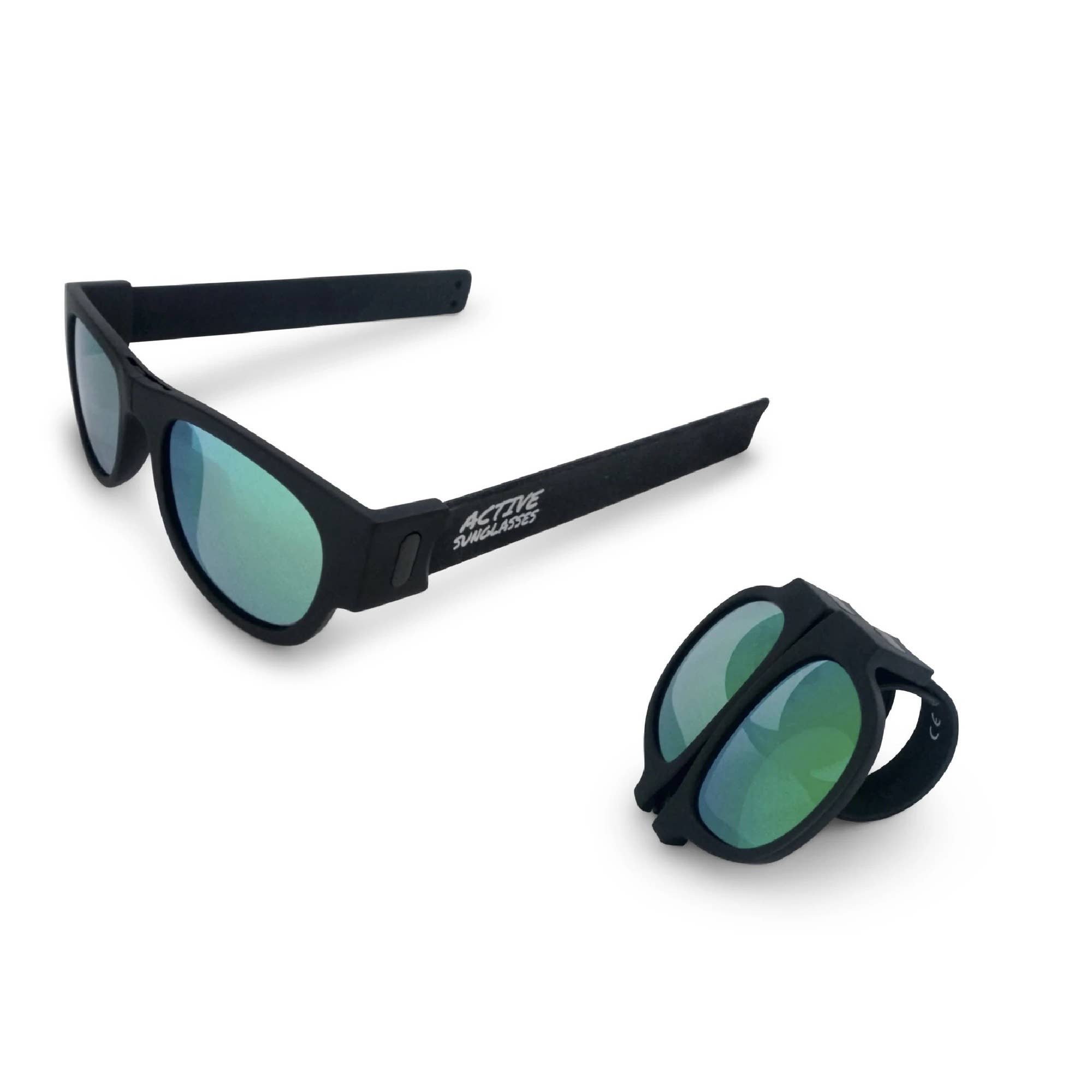Active Sunglasses have a revolutionary style, with a unique, innovative and fun design. The secret lies in the frame that has a special nose bridge with hinge and in the temples with silicone-coated metal springs. “Active Sunglasses” roll-up sunglasses are the first sunglasses in the world to “grip” your head so they don't fall off, and also bend around your wrist, ankle, bicycle handlebars, car steering wheel or anything else. Active Sunglasses are the perfect accessory for the active lifestyle and the practice of any sport, forget that they fall both on and when carrying them, with their clip-on temple system the glasses will be 100% safe. They are sturdy and lightweight at the same time. The lenses are polarized and UV400 rated, which blocks 100% of harmful UV rays.