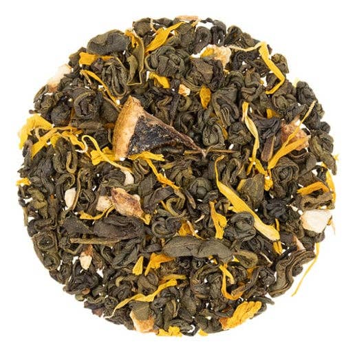 A LIGHT & SWEET BLEND OF LEMON, STRAWBERRY & ​WATERMELON WITH A TOUCH OF CREME FLAVOR (DAIRY-FREE). MAKES A GREAT ICED TEA! INGREDIENTS: Green Tea, Apple Pieces, Lemon & Orange Peels, Hibiscus, Marigold Flowers, Strawberries, Natural Lemon, ​Vanilla, Strawberry Creme, and Watermelon Flavors