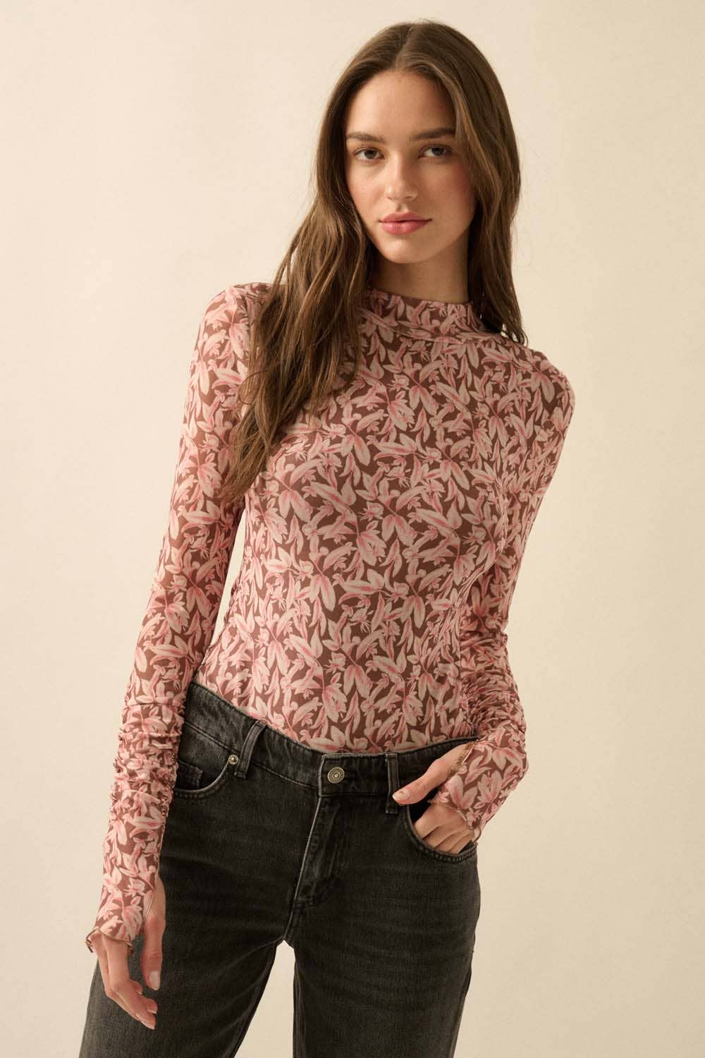 ACRYLIC CHAIN STRAP BODYSUIT PRINTED MESH ACRYLIC CHAIN STRAP BACK ZIPPER BUSTIER-LIKE BODY
