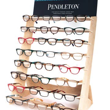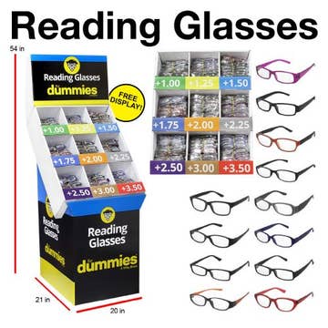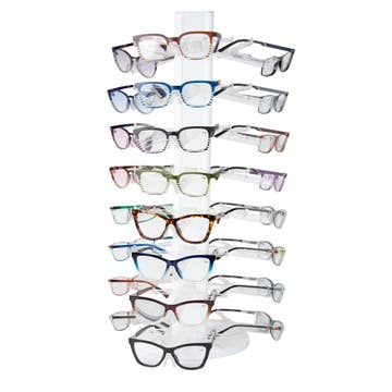 With this bundle, you will receive the display FREE as well as 52 pairs of blue light filtering Focusâ„¢ readers with complimentary cases, plus 8 Chains and 4 Key Chain Cleaning Kits. Peepers will give you a best seller assortment with strengths +1.25 through +2.75. This display holds 32 pairs of glasses.
