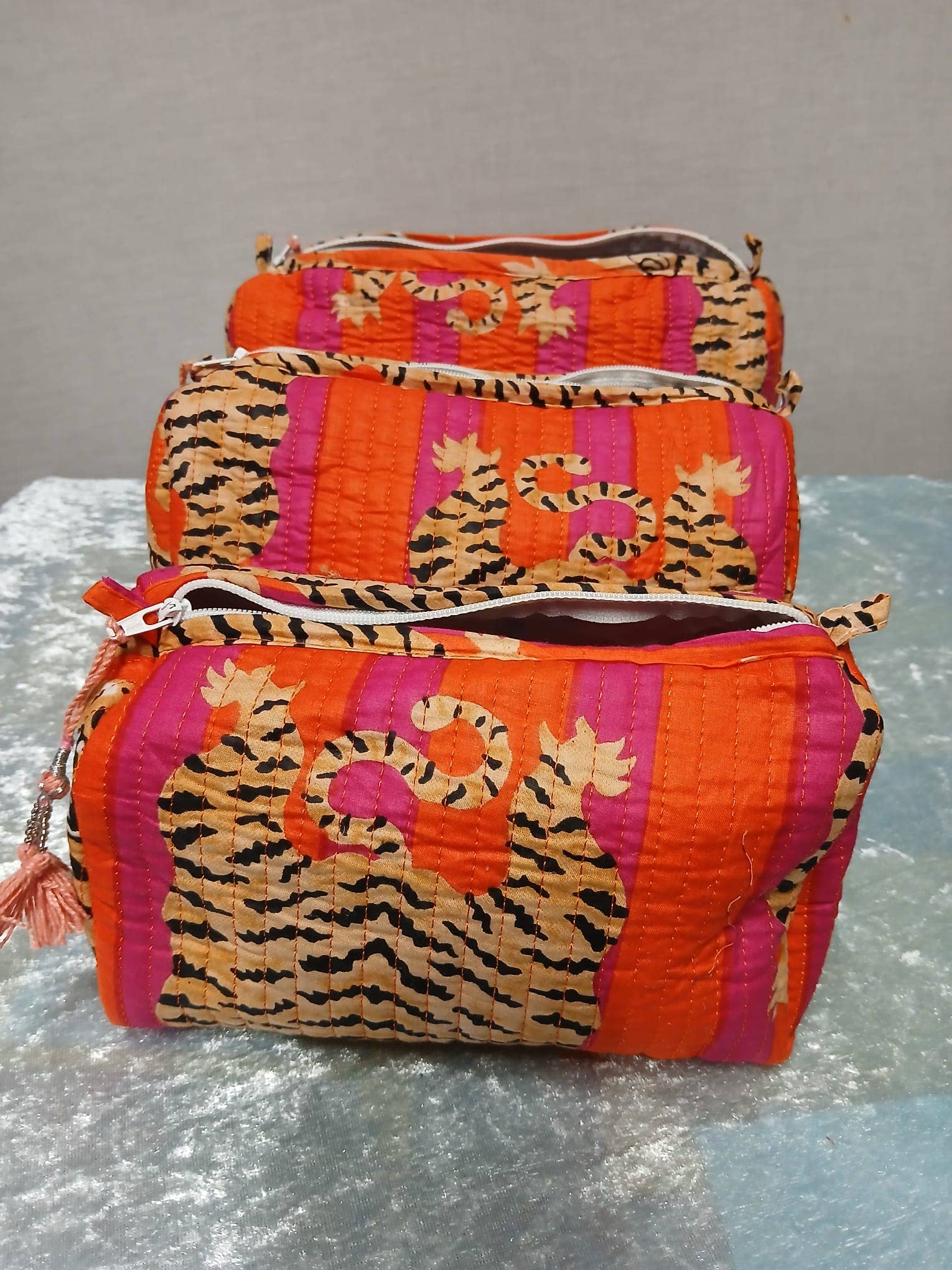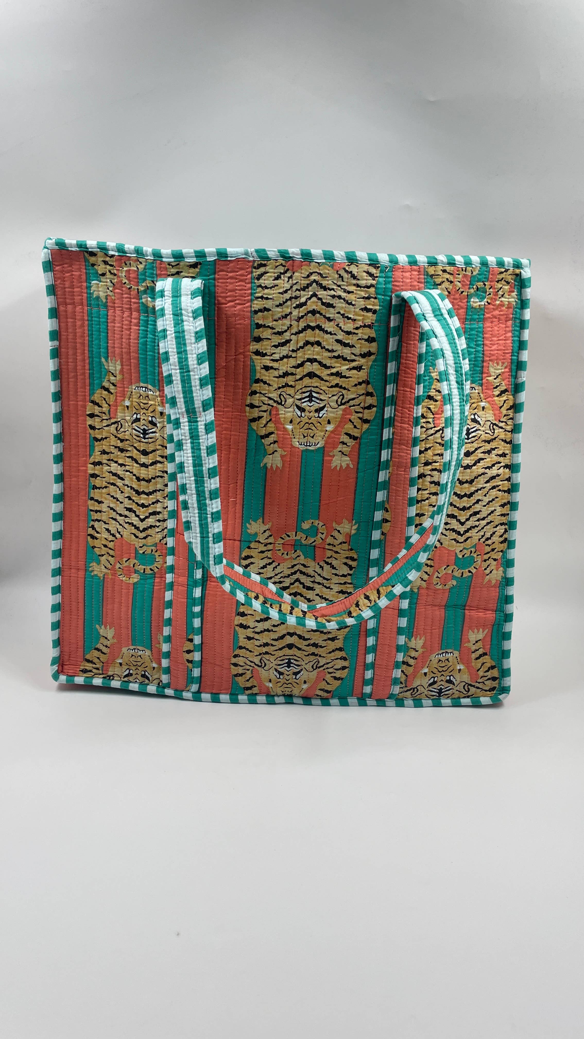 Animal Print Cotton Kantha Quilted Boho Tote Bag with Zip