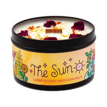 This limited edition candle smells like the sweet perfume of snowflake kisses, peppermint candy, and freshly fallen snow. Hand-poured with soy wax and essential oils of ylang ylang, peppermint and ho wood. Each candle is magically infused with gemstones, cornflower petals and German glass glitter. SPECIFICATIONS: All natural ingredients. No chemicals, synthetic oils, fragrances or dyes are ever used. Please note that each candle is made by hand and slight variations do occur. OPTIONS: 1. 2oz tin + natural cotton wick - 1 1/2 inches (depth) x 2 inches (diameter) - Approx. 12 hours burn time. 2. 5oz tin + natural cotton wick - 2 inches (depth) x 2 3/4 inches (diameter) - Approx. 30 hours burn time 3. 7oz tin + crackling wooden wick - 2 inches (depth) x 3 1/8 inches (diameter) - Approx. 35 hours burn time