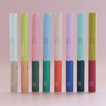 Get lit! Our Flameless Lighters utilize single ARC technology, making for a clean, butane-free ignition for every candle lighting (and more!) Our Flameless lighters recharge through a convenient USB port. A safety switch is included to make accidental lights a non-issue. Packed in a colorful gift box with a 5" USB-C cable, these are a thoughtful & handy addition for candle gifting. Packaged in Gift Box, includes Charging Cord + Instructions/Safety Sheet. Available in 8 Colorways: Poppy: Vermillion + Peach Earth: Blue + Green Sherbet: Melon + Lemonlime Blue Moon: Lilac + Periwinkle Blue Oceana: Aqua + Dark Teal Neutral: White + Taupe Beverly Hills: Pink + Green Martini Olive: Chartreuse + Magenta Keywords for your SEO: lighter, usb lighter, rechargeable, green gifts, eco gifts, reusable, matches, candle gifts, hostess gifts, best seller, best selling, boutique gifts, quality gift, giftshop, botanica, reuse