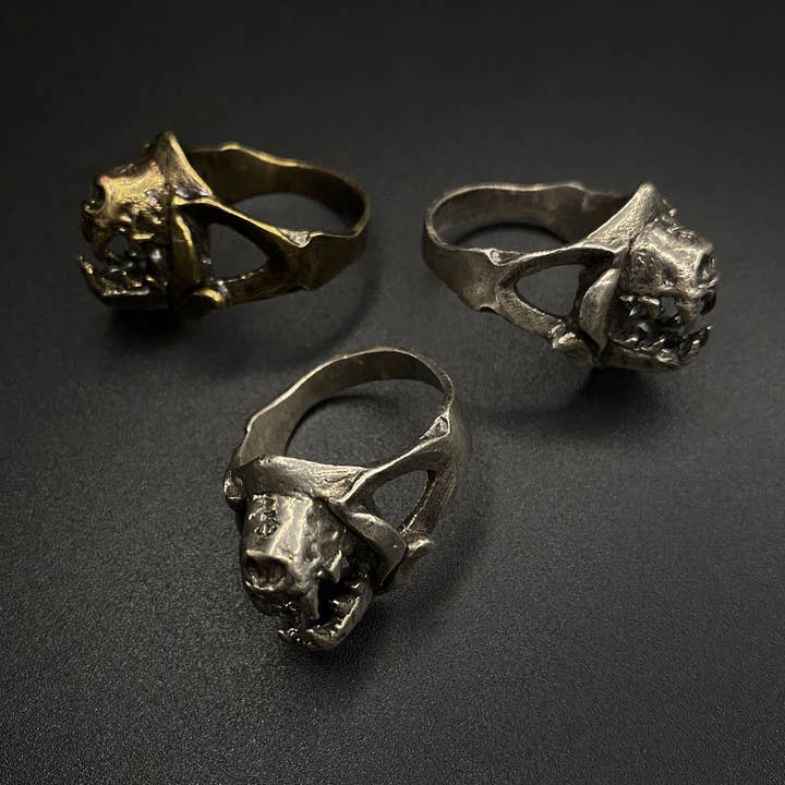 This Bat Skull charm will add a little bit of cute macabre to your keychain, bag, or use it as a zipper pull on your hoodie! I carved the original master out of wax and cast a sterling silver piece first, before the pewter version was made. The pewter bat skull is made out of lead free pewter and the hardware is nickel and brass. The brass version is full brass. Due to the handmade process, there will be slight variances to the finish of the bat skull. The skull length is about 5/8".