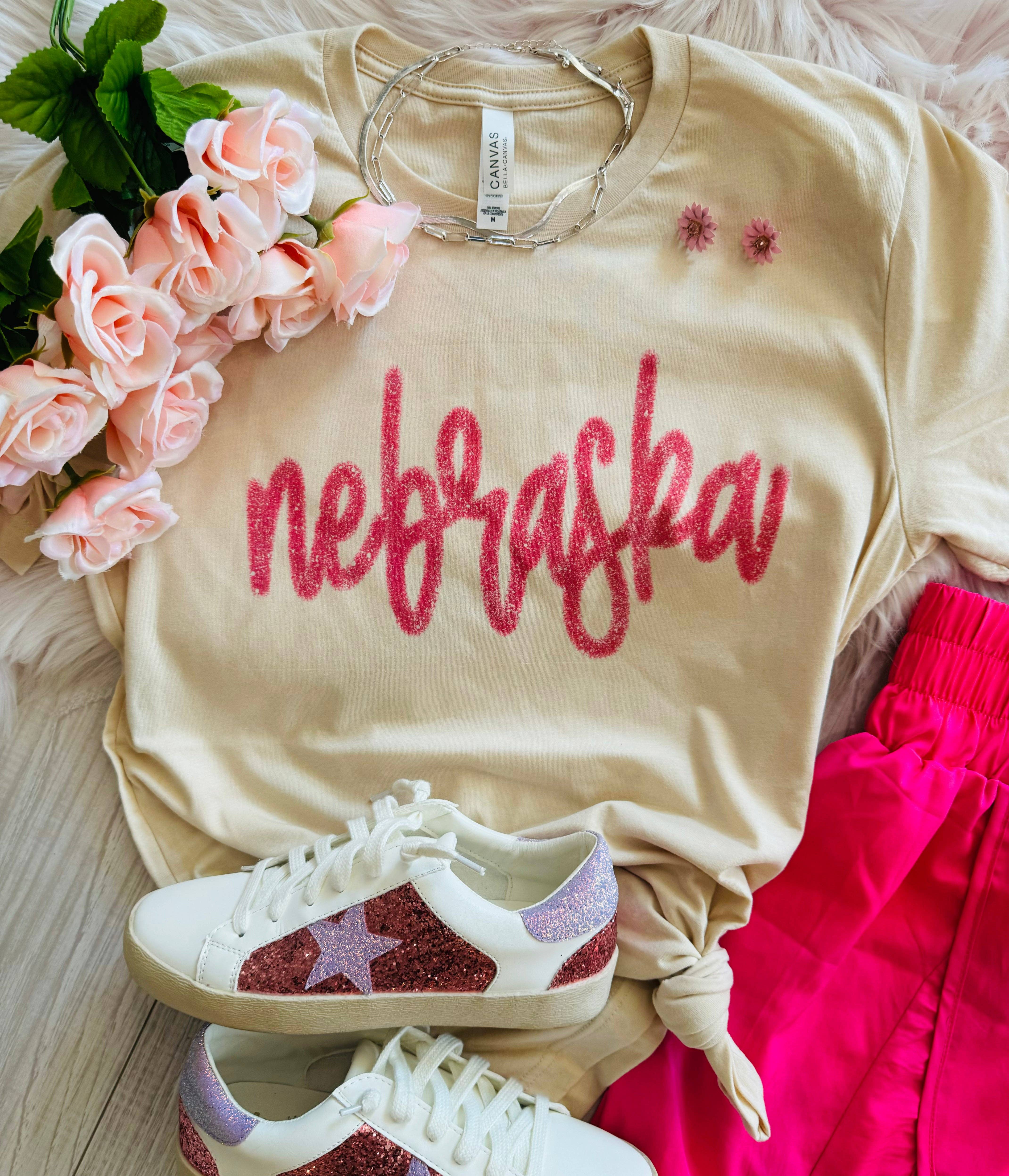 Show off your University of Nebraska Corn Huskers Spirit with this tee that is perfect for Game Day or Any Day! 4 oz., 50% Combed Ringspun Cotton, 50% Polyester Set-In Ribbed Neckband Double-Needle Stitching at Sleeve & Bottom Hem Tear-Away Label Officially Licensed MEASUREMENTS: Body Length: XS – 18” S – 19” M – 20” L – 21” XL – 22” 2XL – 23” Body Width: XS – 20” S – 21” M – 22” L – 23” XL – 24” 2XL – 25”