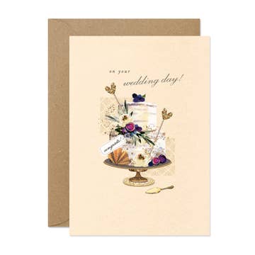 High-quality wedding card digitally printed with an antique collage style illustration of flowers in an urn. Blank Inside. 4.25" x 5.5" (A2). Printed in the USA on 100% PCW recycled 110lb heavyweight card stock. Includes a kraft paper envelope. Plastic sleeves are optional and cards packed without sleeves are offered at a reduced price in an effort to encourage minimizing plastic waste. Hemlock House Studio infuses vintage and antique imagery with a modern design sense to create a diverse and beautiful collection of greeting cards. Featuring playful illustrations of flowers, mushrooms, plants, animals, fairies, colorful patterns and more Hemlock House Studio cards are perfect for anyone who loves curious, beautiful things. Other card designs include thank you, love and romance, friendship, everyday and any occasion, birthdays, weddings, new baby, congratulations, sympathy, celebrations and good luck.