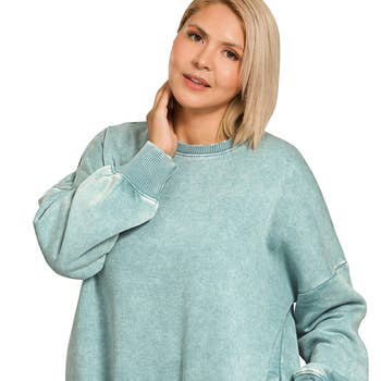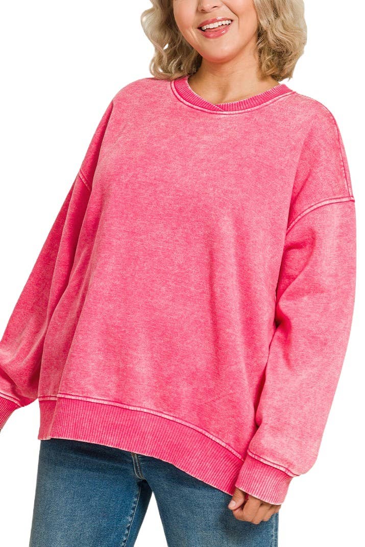 Plus Acid Wash Oversized Fleece Pullover
