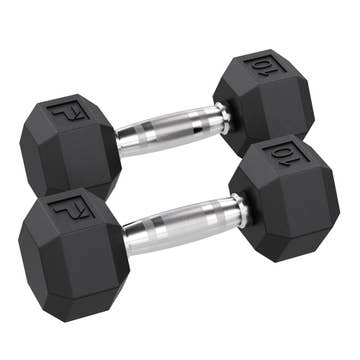 Rubber Coated Hexagon Dumbbells - Set of 2