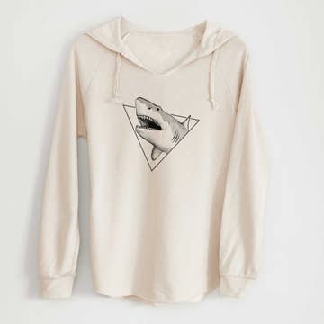 Respect the locals shark head zip hoodie. Hand printed with eco-friendly ink and made with love in Gloucester, MA. 7.5 oz./yd², 55/39/6 cotton/polyester/rayon triblend fleece Off-white zipper tape and drawcord Split-pouch pockets