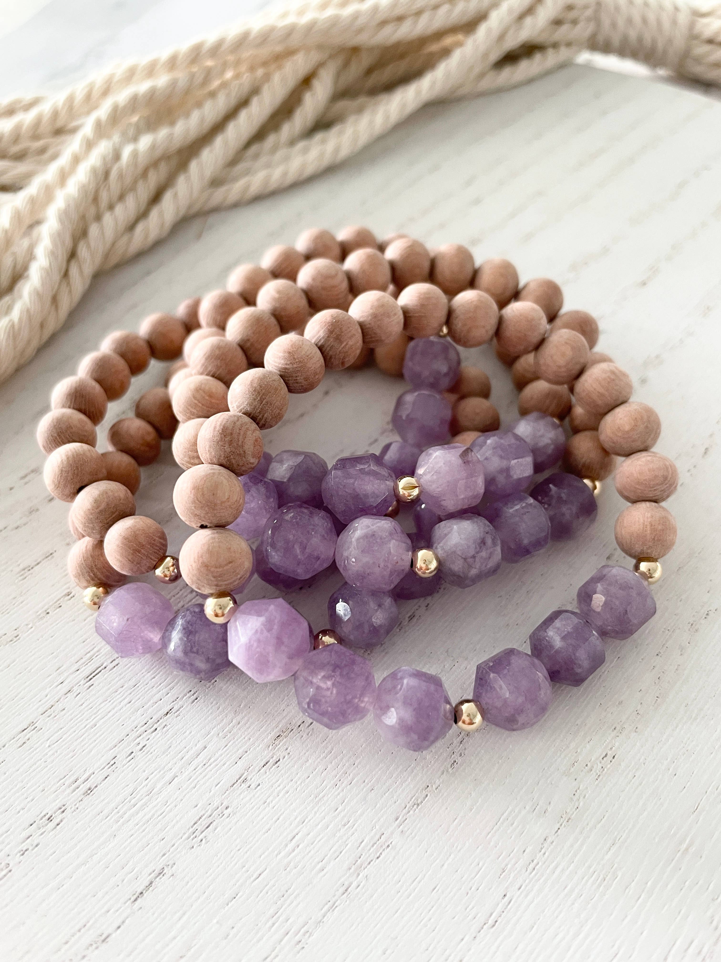 The Indie is designed with natural pink quartz stone and dalmation jasper along with raw rosewood diffuser beads. Stones are 8mm in size and can be stacked with other designs or worn alone. Each design is made with 1mm stretch cord that gives strength and allows for stretch. Simply add 1-2 drops of essential oil to the raw rosewood diffuser beads to enjoy the aromatic benefits throughout the day. Re-apply as needed. Each design is individually tagged to allow retailer to price.