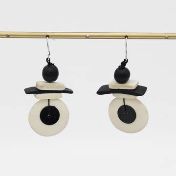 Complete you stylish look with Sylca's Assuta White Drop Earrings! These unique dangle earrings feature a mix of black and white wood beads. Not only are they lightweight for all-day comfort, but their artistic design makes a bold statement. Add a touch of creativity to any outfit! Earrings hang 2" in length Earring Width: 1" Care Instructions: Remove jewelry when applying perfumes, creams, washing hands etc. Do not store in direct sunlight. to restore color and shine apply a drop of oil with a soft cloth