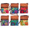 Small-sized rectangle shaped slim crossbody purse passport bag with multicolored embroidered floral design and suede. Bag is handmade with embroidered cotton and vegan leather suede. Worn with adjustable crossbody strap for a comfortable fit. • Item code: MN-FWR-PP • Sold in assorted colors and floral patterns. • Sealed with zipper closure. • Exterior front pocket with zipper. • Materials: Cotton, Vegan Leather • Handmade in Guatemala. Disclaimer: Each one of our products are handmade and unique. When ordering wholesale, customer will receive ASSORTED COLOR, AND/OR PATTERN variations of the product.