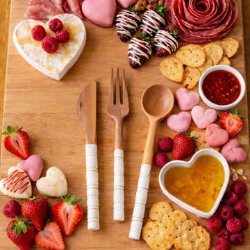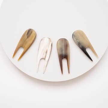 This spoon, fork and spreader set is the perfect addition for any host or hostess. Made from hand-carved olive wood and ethically sourced cow horn bone, the minimalist, yet elegant appearance of this product adds just the right touch to any event. Each utensil is hand-carved and measures approximately 6.5" in length.