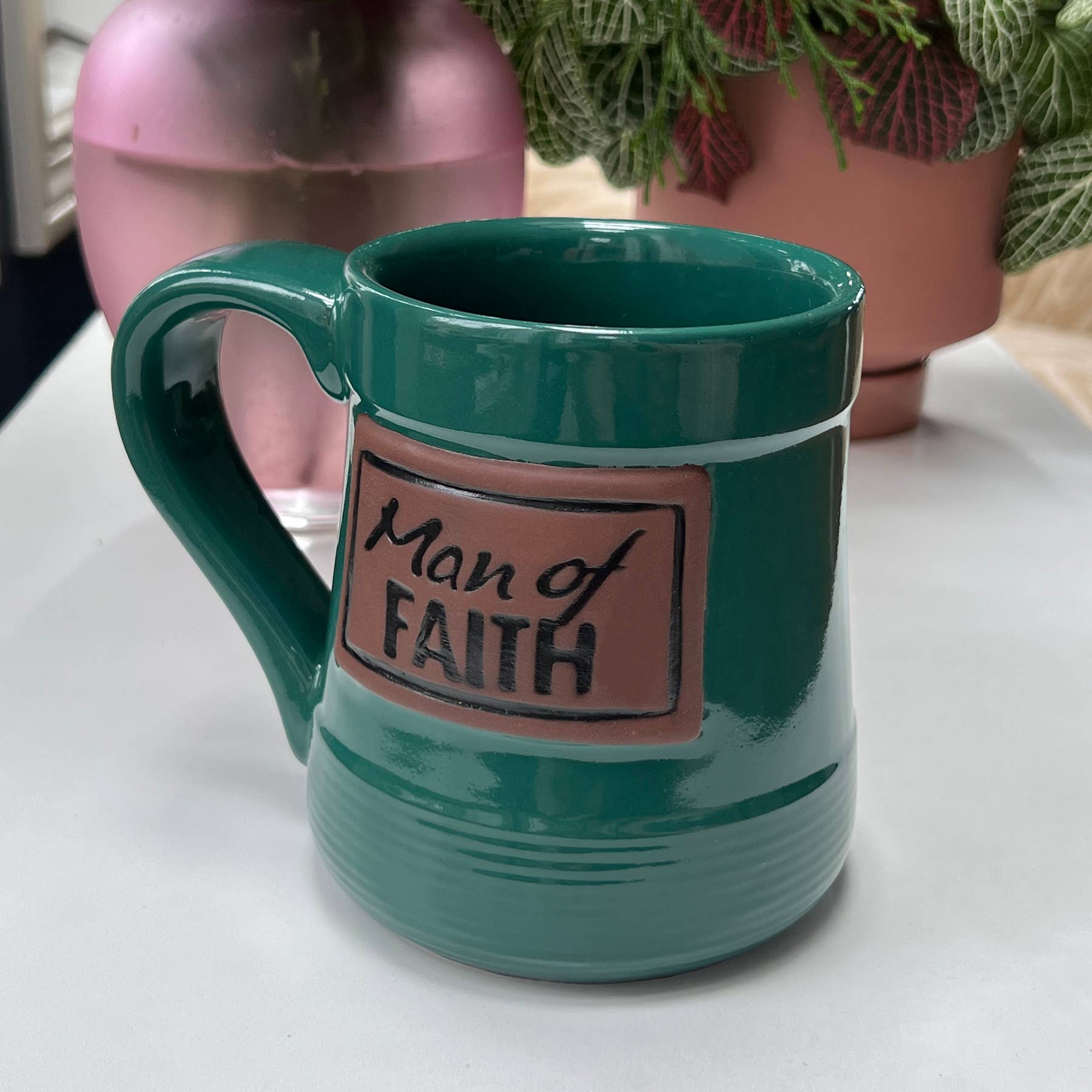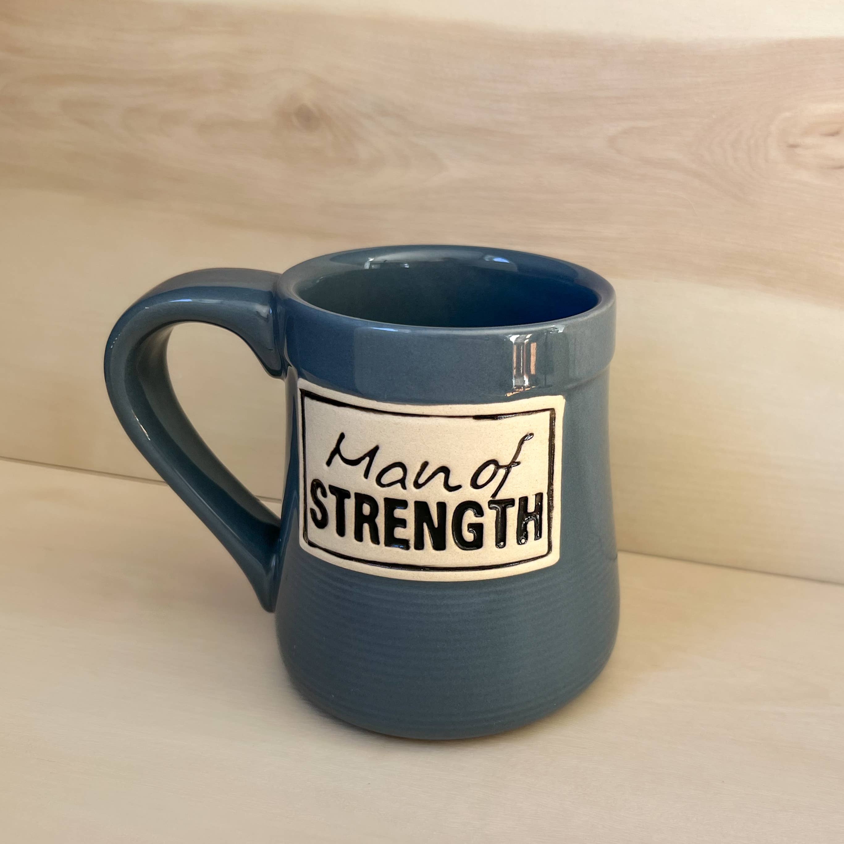 Man of wisdom, handcrafted stoneware w/pottery glaze finish, raised white clay-look accent & message, "make me to know all things….." Ps 25:4 microwave/dishwasher safe, 20 oz, boxed.