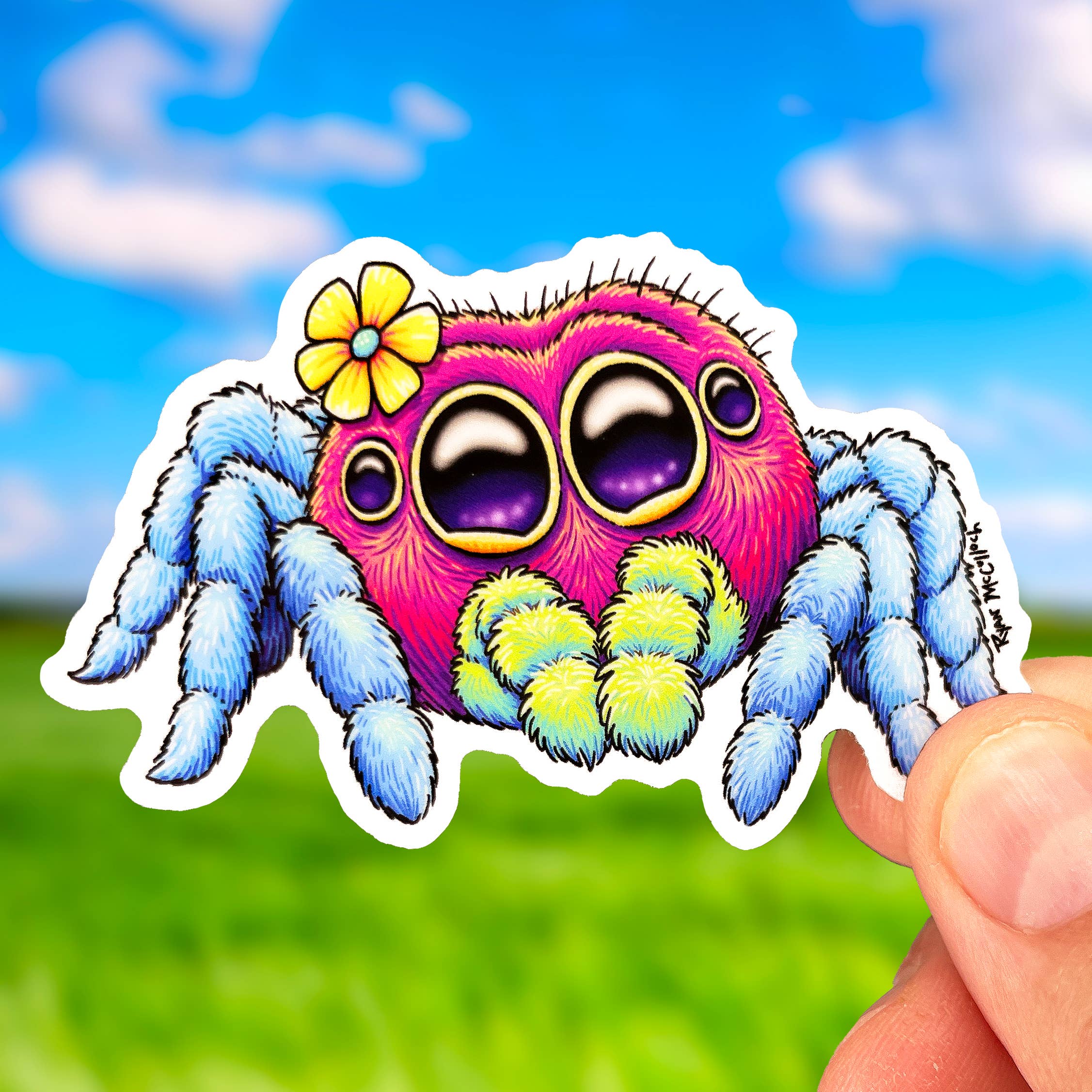 I have gotten SO MANY REQUESTS for Cute Jumping Spider Stickers! All of my premium vinyl stickers are durable, waterproof, and U.V. protected. These stickers are not printed on a home printer, they are printed professional printing companies. Art by me, Ryan McCulloch tags: water-proof decals, funny animals, wildlife, humor, humorous, unique gifts, cute critters, foodimals, entomology, entomologist, insect art, bug art, zoo gift shop, pet store, cute jumping spider, arachnid, Salticidae, arachnophobia, spider sticker, regal jumping spider, bold jumper, Arachnida, exotic pet, exotics, gift for girls, pink sticker for girls Great for a jumping spider enclosure!