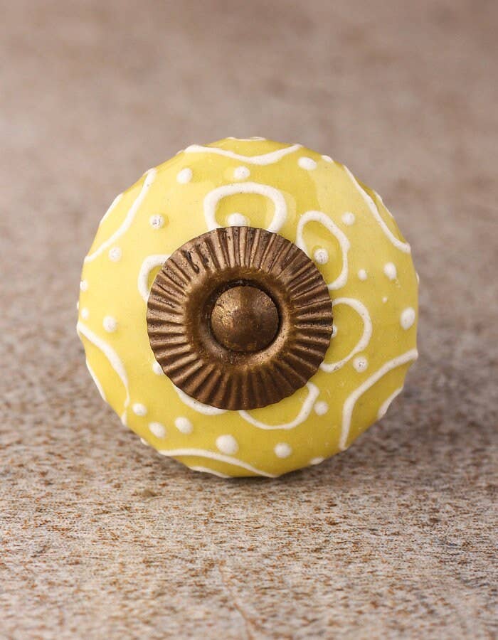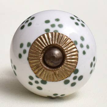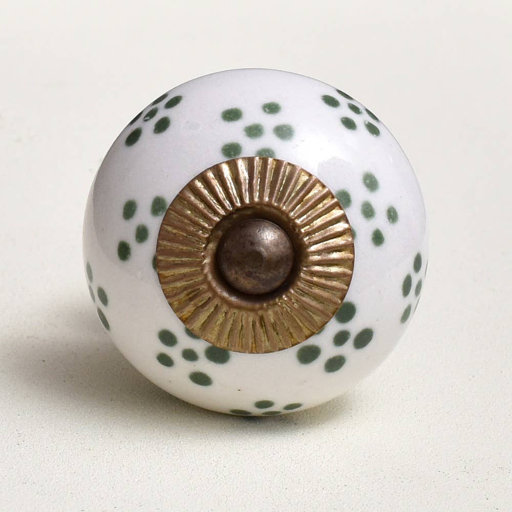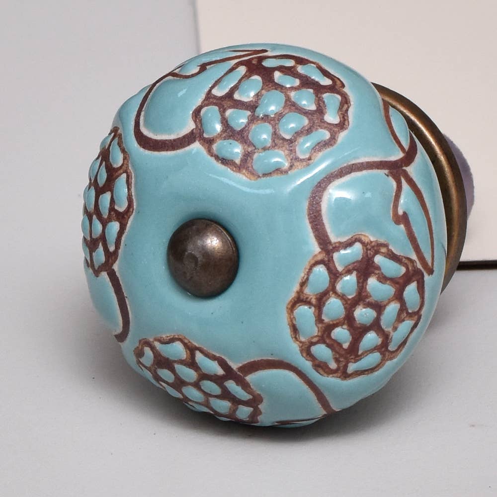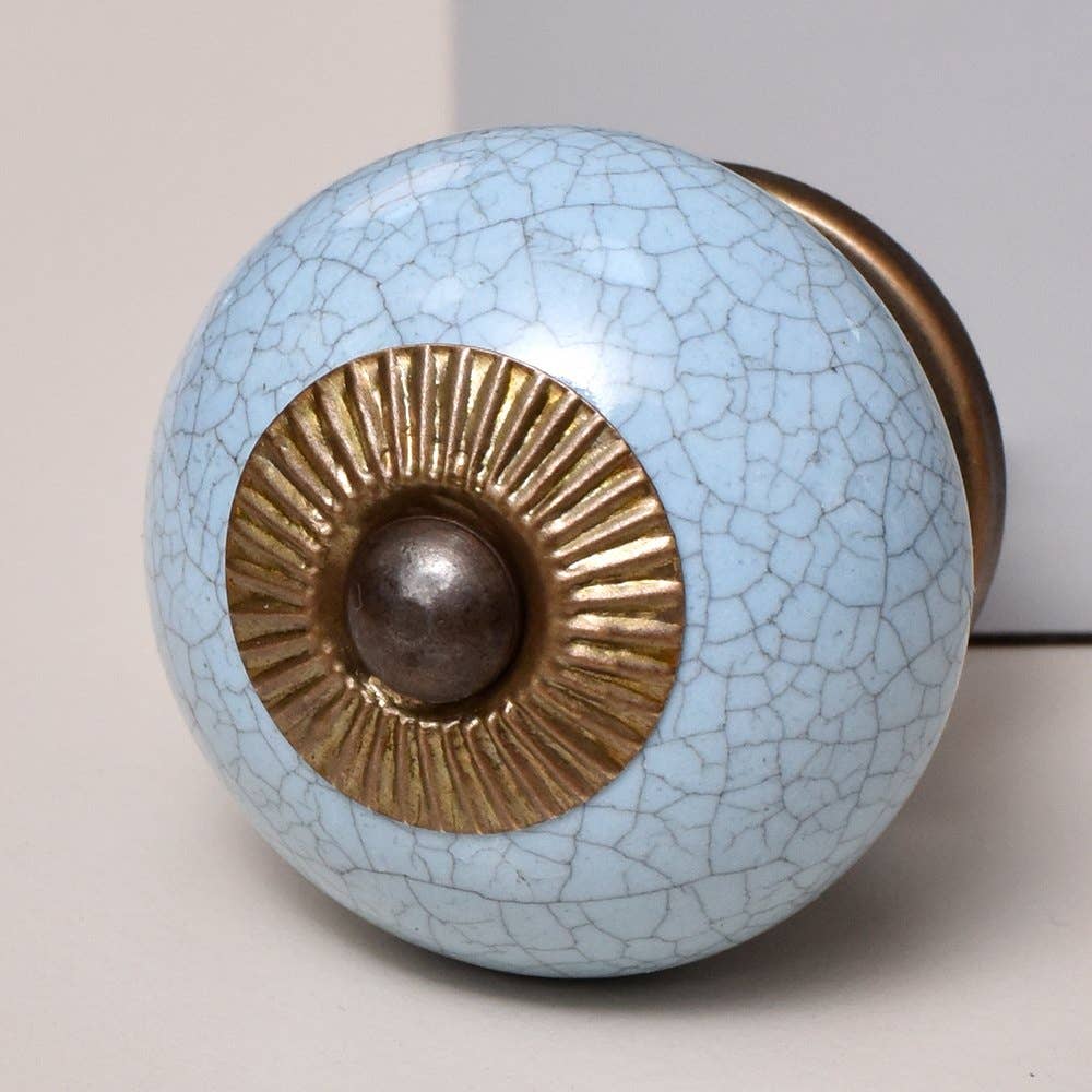 Vintage Round Crackle Light Turquoise Ceramic Door Knob Vintage Round Cracked Turquoise Ceramic Door Knob is the perfect choice to give the descent and elegant look you wish to have for your room. It is perfectly suitable for any cabinet or drawer in your kitchen, bathroom or even your dressing. Being handmade it gives you a very personal and elegant appearance to your drawers or cabinets. These uniquely crafted ceramic knobs are 4.32 cm in diameter and also includes screws for easy installation of the knob. There are four different metal finish options available which are: Silver Silver Antique Brass Brass Antique The color and design may slightly vary from the given image.