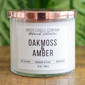 Customer-favorite Oakmoss + Amber is a fresh, clean fragrance with wide appeal for any time of the year. This lively green scent features top notes of orange, grapefruit, and sage with base notes of oakmoss, amber, and tonka bean that give this soy candle its lush, earthy characteristics. All Fern x Flow candles are hand-poured in small batches using USA-grown vegan soy wax, phthalate-free and paraben-free fragrance and essential oil blends, and lead-free and zinc-free cotton wicks. Additional Candle Details Scent: Lush • Green • Earthy 8oz Dimensions: 2.8" x 2.8" x 3.5" 16oz Dimensions: 3.6" x 3.6" x 3.8" 8oz Weight: 15.2 oz (approx) 16oz Weight: 24.5 oz (approx) 8oz Burn Time: 50 hours (approx) 16oz Burn Time: 100+ hours (approx)