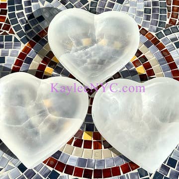 Natural Selenite aka Satin Spar Heart Bowls. These heart bowls can range from 14cm to 15cm wide, 3.5cm to 4cm tall. Satin Spar May have Iron inclusion. Satin Spar is found in Morocco. Minimum order 3 Pcs. Condition is New. Free local pickup in Brooklyn, New York. Stones, stone wholesale, crystals, crystal bulk, crystal wholesale, spiritual, spiritual items, meditation, metaphysical wholesale.