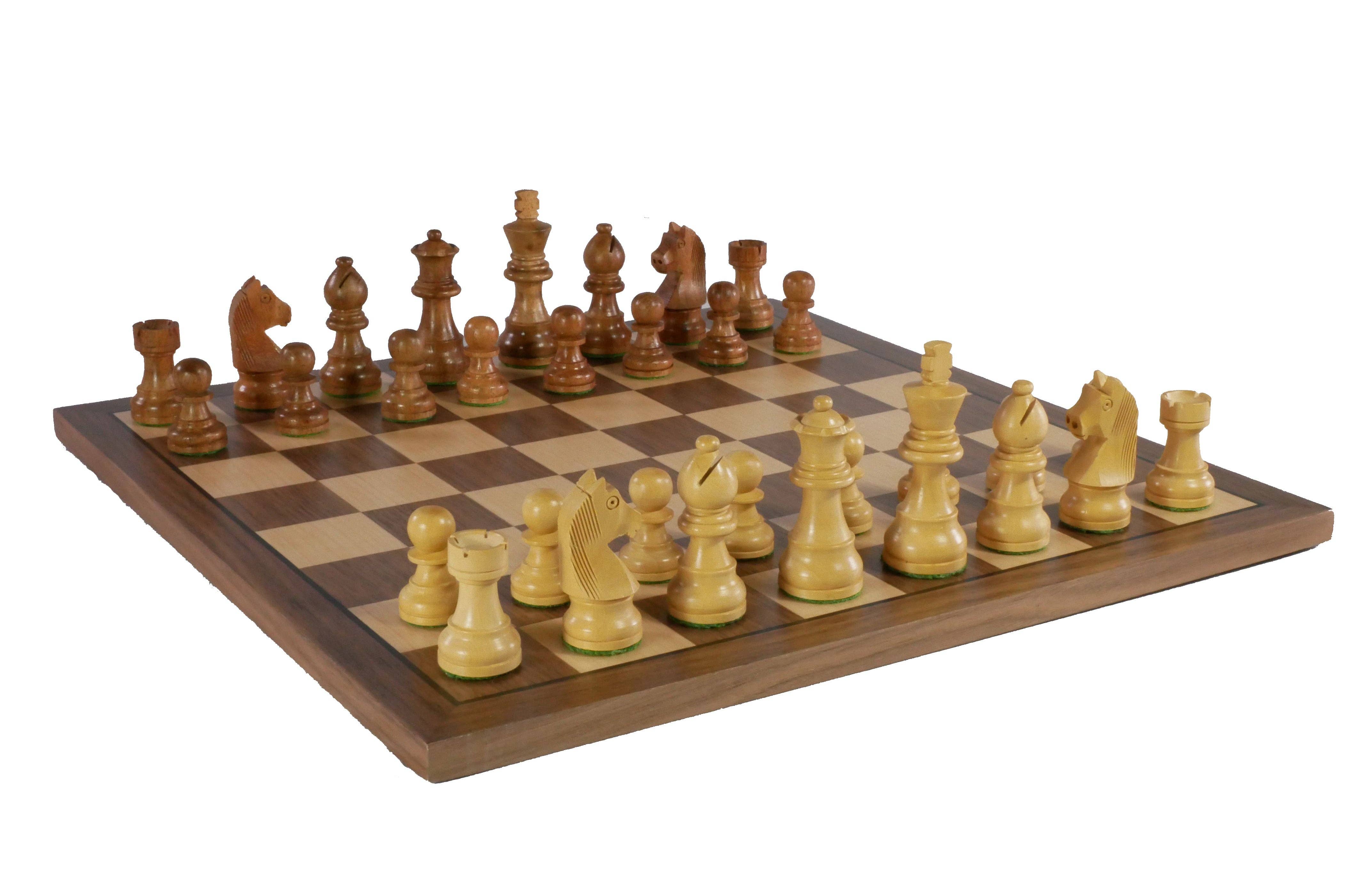 Chess Set - Sheesham/Boxwood German Knight on Walnut & Maple Veneer Board