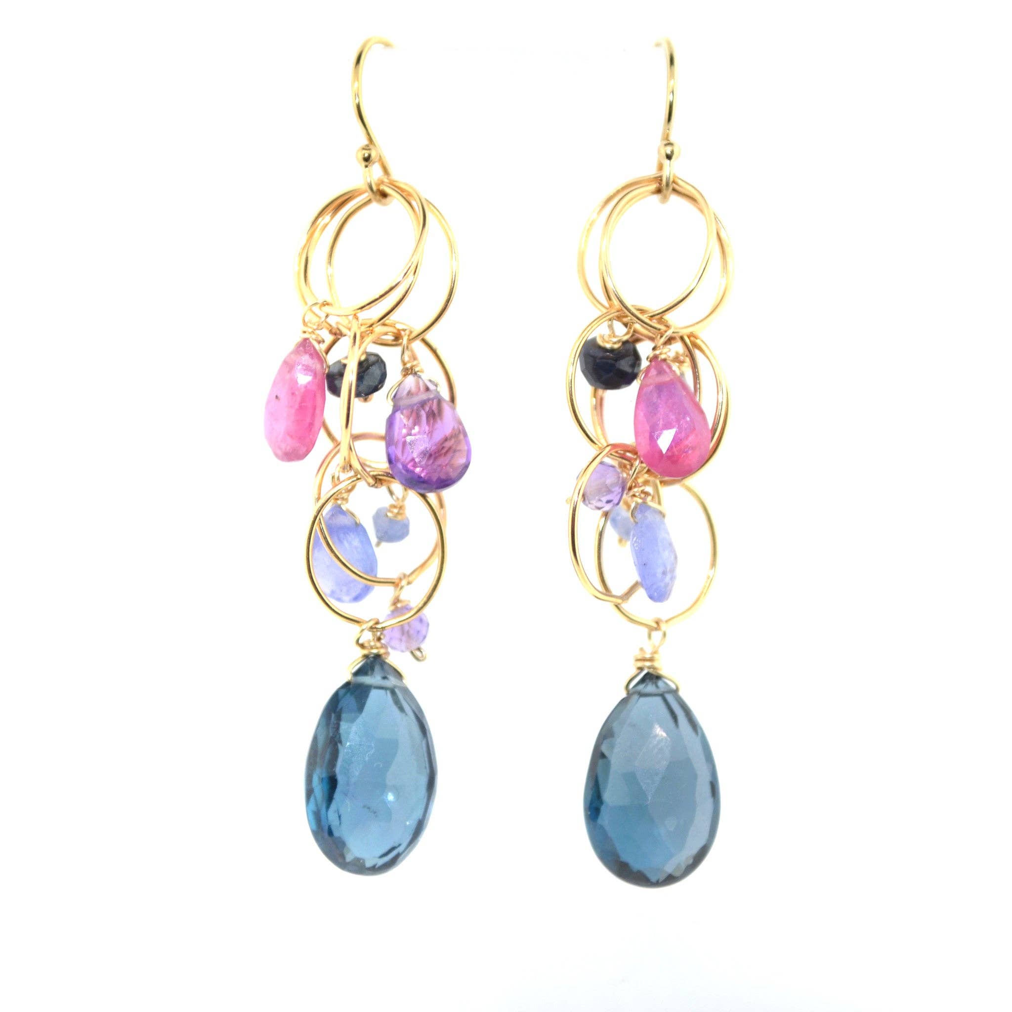 A simple staple, the Bia Earrings feature vintage textured brass rings with hand-cut gemstones. Available in Iolite, Prehnite, Moss Aquamarine & Tourmilated Quartz. Length: 1.25" Recycled brass Hand-cut undyed natural gemstones, cut in India 14K gold-fill earwires Handmade in Vancouver BC