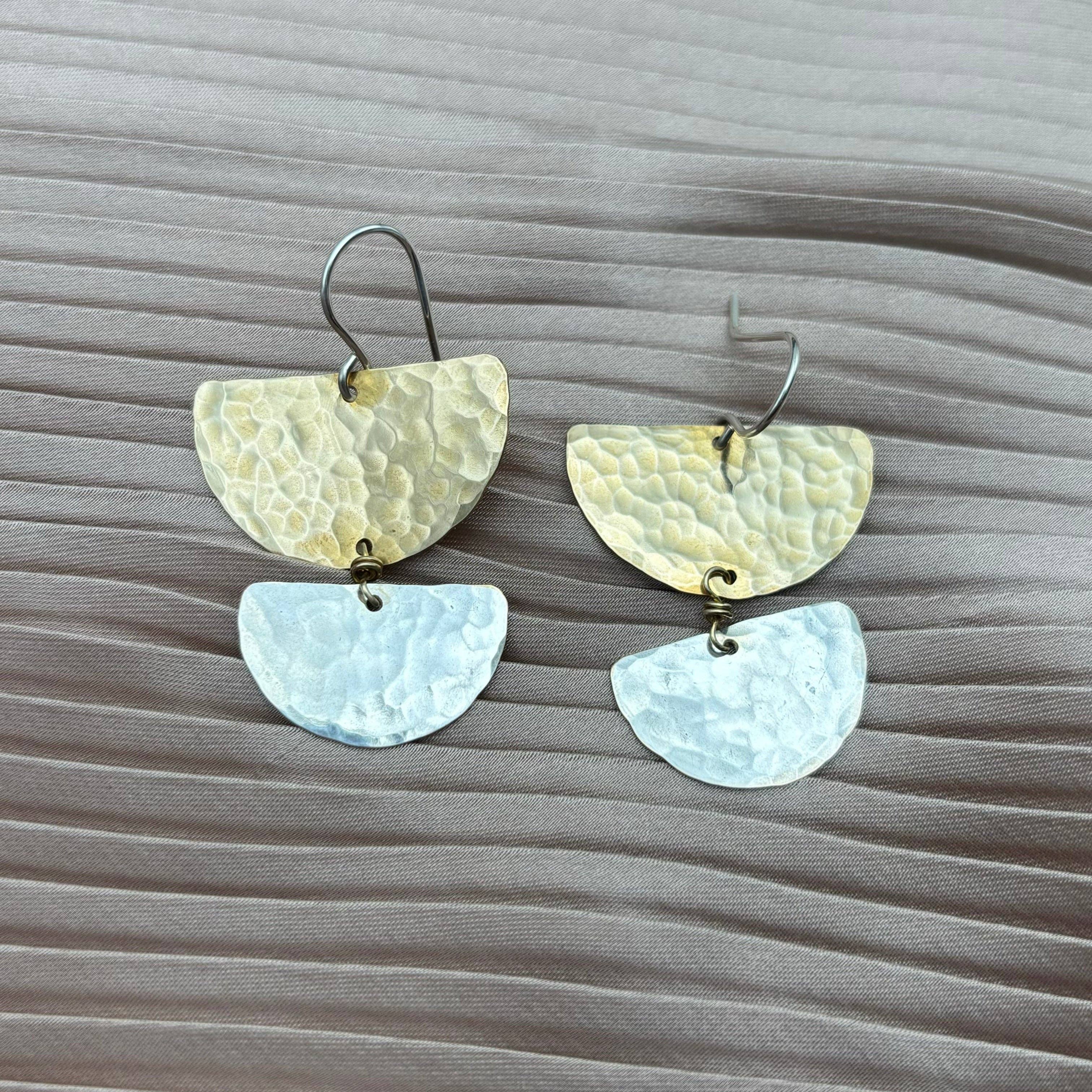 Handmade organic pebble shaped stacked earrings; handmade out of polymer clay; lightweight; hypoallergenic gold findings