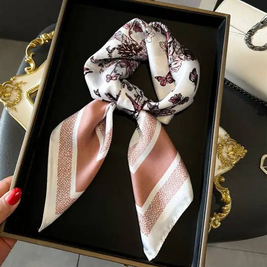 Skinny Silk Scarf for Hair, Neck or Bag Wrap_CWASC1512🎗️