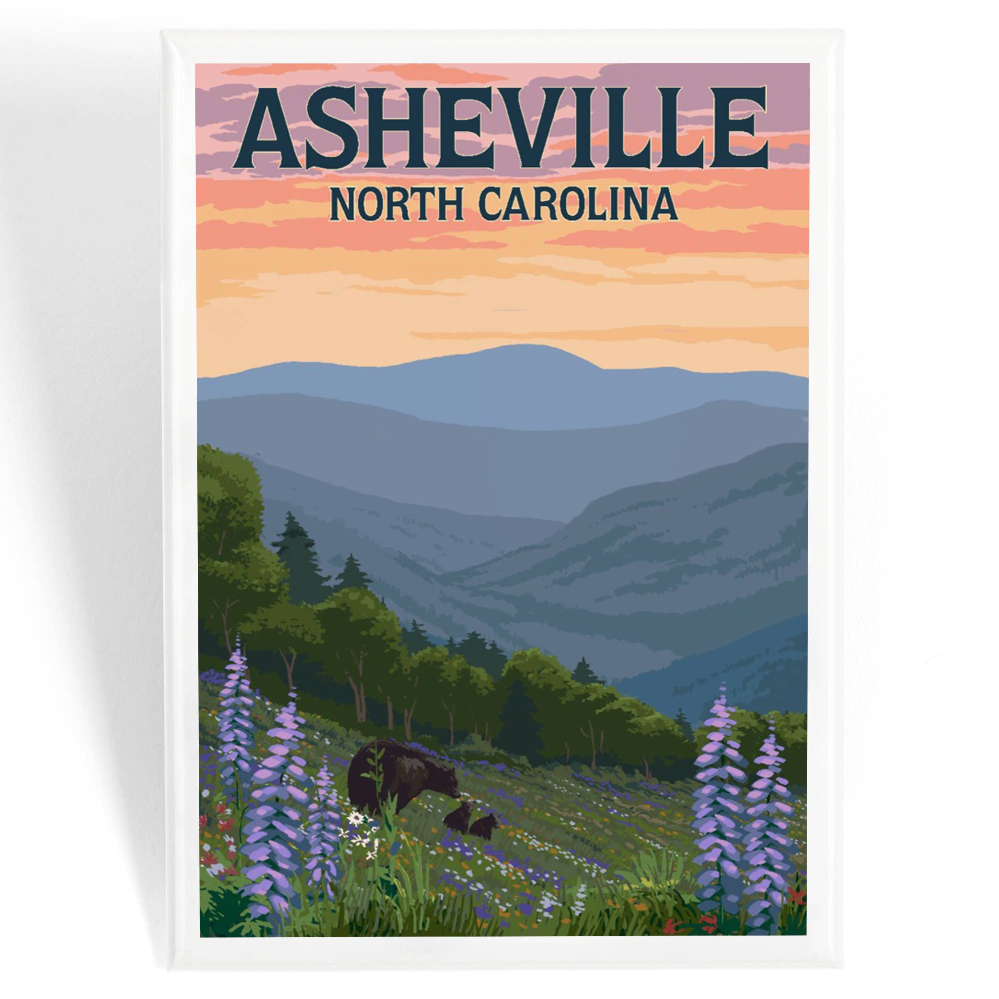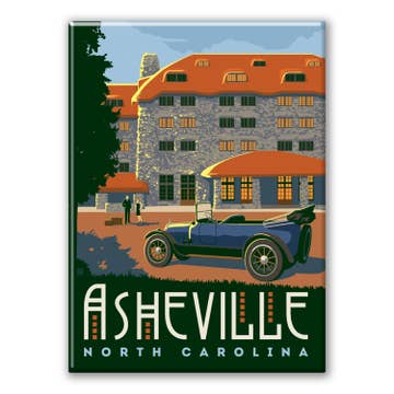 Minimum 6 per style. Suggested retail: $5.95 each 3.5" W x 2.5" H Made in the USA Come for the mountains, stay for the restaurants and galleries. This refrigerator magnet celebrates Asheville in all its glory. Keywords: asheville, avl, north carolina, blue ridge mountains, local, magnet, souvenir, nc, rectangle, gift, travel, city, scape, town, buildings, horizon