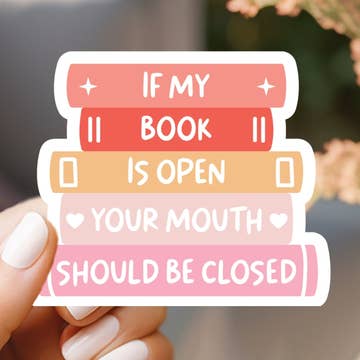 This sticker goes out to one of the best aspects of romance books—the banter! Nothing makes a book good like some good sarcastic flirting. All the chemistry comes from the fun ways the characters communicate. Designed like an iPhone away message, it reads ‘do not disturb, the banter is too good.’ It is made from water and sun-resistant glossy vinyl and comes in two sizes: small (2.7x.7 inches) and large (3.87x1 inches).