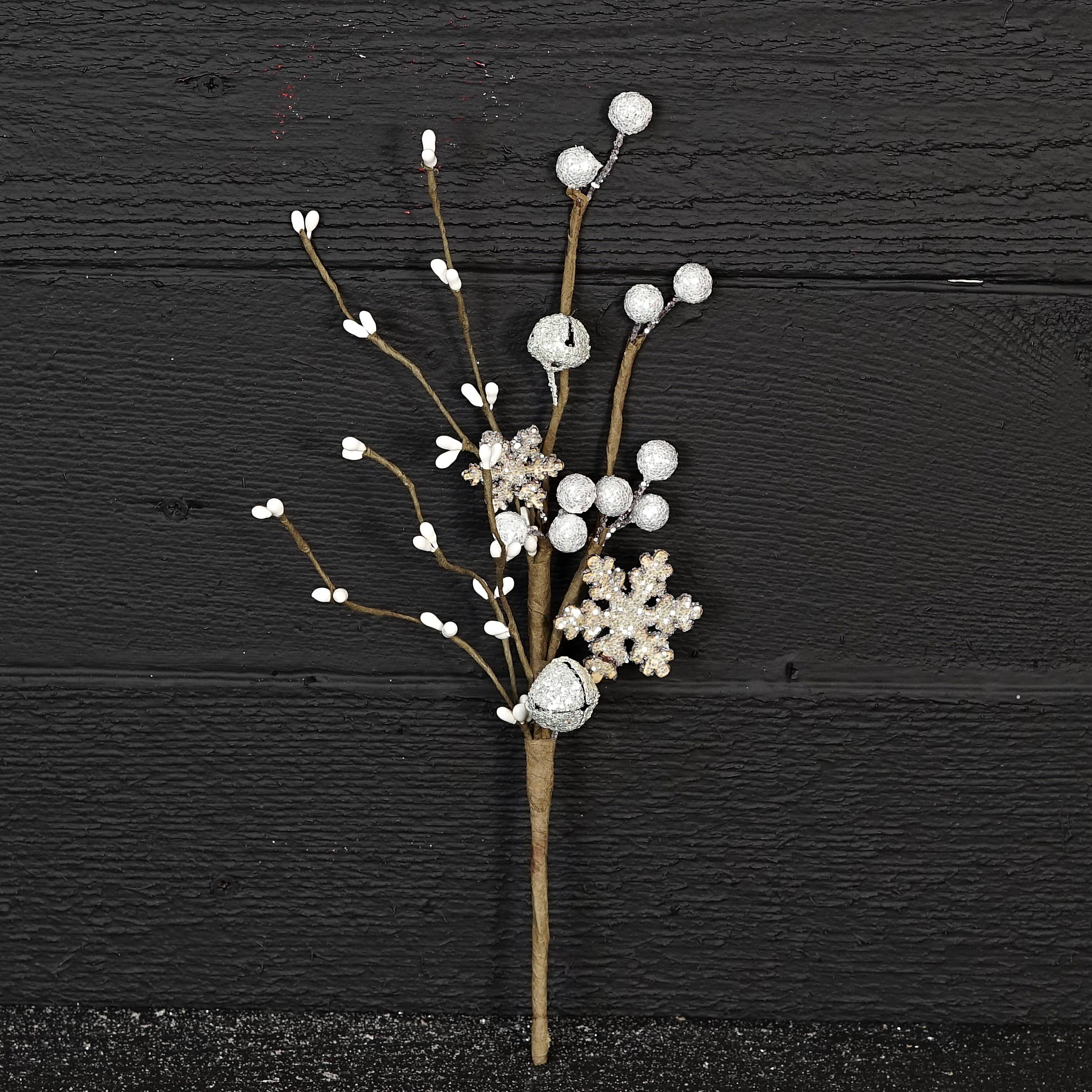 Get all the long and slender shapes and forms of Ilex berries in gilded metallic champagne with this shiny berry spray. This tall berry spray can be added to your large Christmas floral arrangements or large arrangements of pine branches and boughs for a holiday party.