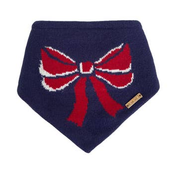 * DeluxeFIT Design: Curved neckline + secure snap closure for a comfortable, stay-put fit. * Classic Americana: Intarsia-knit American flag design with timeless, vintage appeal. * Premium Knit: Soft wool blend finished with a ribbed border and luxe die-cut gold tag. * Versatile Fit: Tie the bandana for a relaxed look or snap for a more snug, secure fit. The Betsy Ross Bandana is a true TDP Classic - designed to celebrate timeless American style. Featuring our exclusive DeluxeFIT design, an intarsia American flag, and luxe detailing, it's a piece you'll reach for season after season. Product Details * Fabric Main: Wool Blend (50%/50%) * Care Instructions: Hand wash only. Iron on low. * Always supervise your pup when wearing any TDP accessory as it may pose a choking hazard if consumed. Please refer to our full safety disclaimer here. Sizing Please measure prior to purchasing for the best fit. Bandanas may be tied and then snapped to reduce neck size. Trademark Information This Bandana is a trademark of The Deluxe Pup. For more information, read our full disclaimer, here.