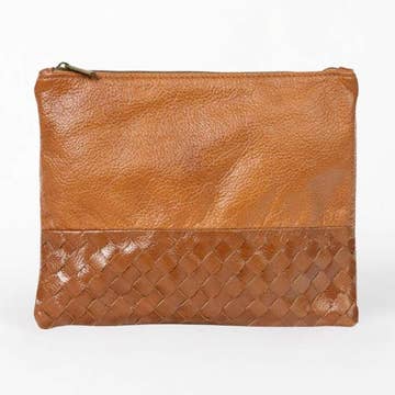Large Leather Woven Pouch