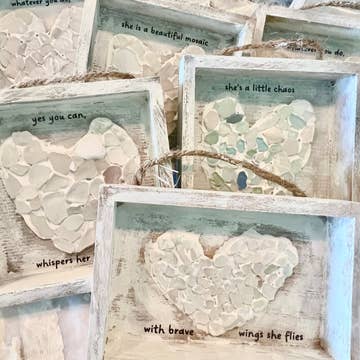 Inspiration Mosaic Sea Glass Heart Art , Choose saying