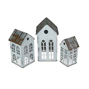 Set of 3 White Galvanized Nesting Houses With Rusty Roof