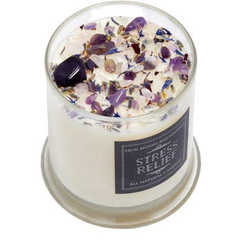 Stress Relief Soy Candle/Eucalyptus and Lavender Candle/Aromatherapy Candle/Self Care Gift/Herbal Candle Let your worries drift away with our Stress Relief soy candle. This refreshing self-care scent starts with soothing marine and spearmint top notes that interplay with a calming heart of eucalyptus and grounding lavender. Mix of : lavender , spearmint , eucalyptus ,lemon Standard 8 oz Jar Wide:2.9 Height: 3.5 in Burn time: Up to 50 hours + Mini 4 oz Jar Wide:2.3 Height: 2.75 in Burn time: Up to 25 hours + Each candle is individually hand poured in IL, USA. Using Cotton in this candle Each Candle is wrapped nicely. Each candle is poured in small batches.