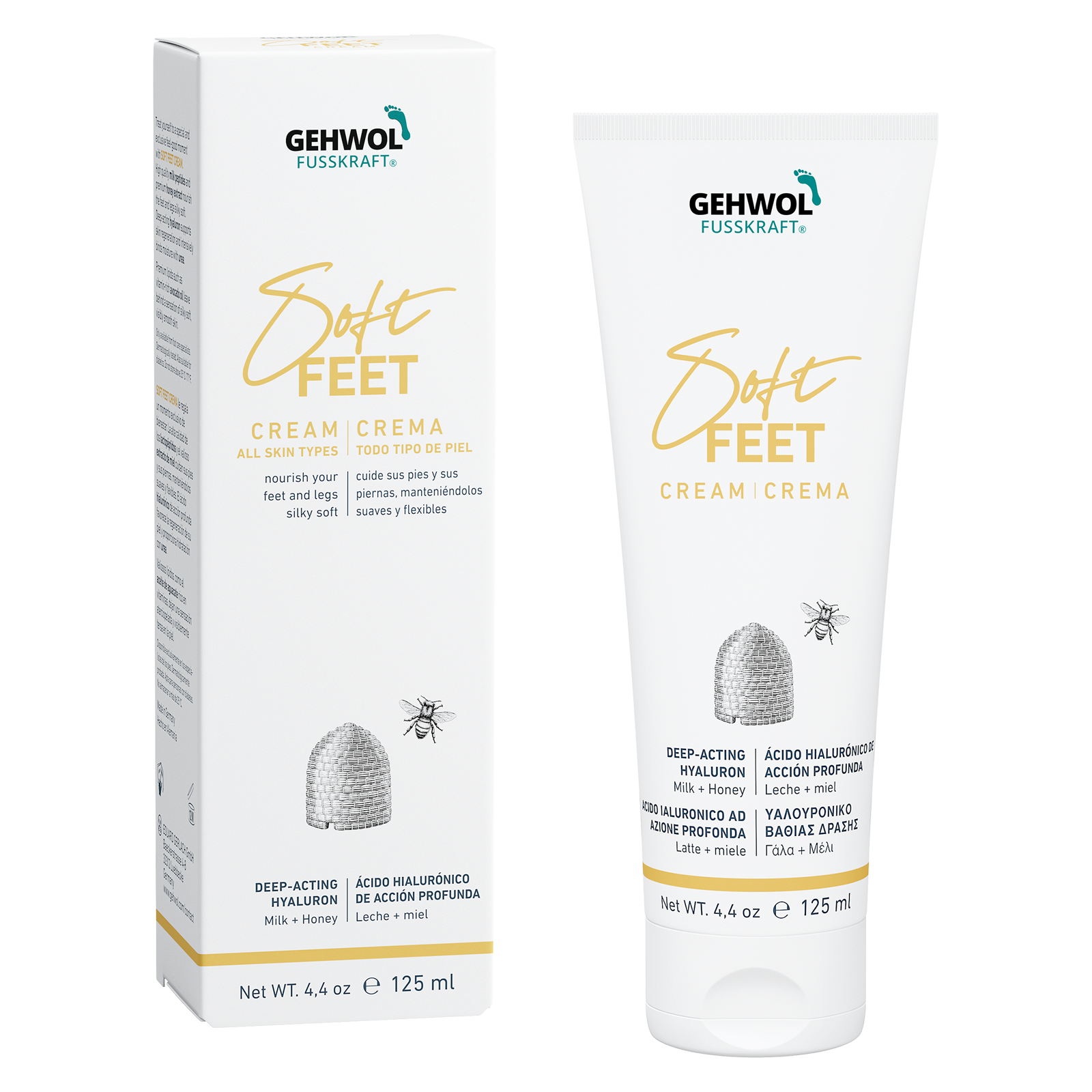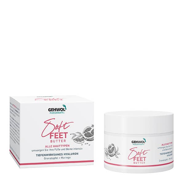 Water Lily & silk for well-cared legs and feet. GEHWOL FUSSKRAFT Soft Feet Lotion refreshes and nourishes with select active substances. Water lily calms and tightens, silk extract smoothes the skin. A specially processed Hyaluron is able to penetrate into deeper skin layers to store moisture there. Soothing for tired, heavy legs—supported by red algae extract, avocado oil and phytosqualene counteract dry, coarse, scaly skin, and reduces moisture loss. The lotion is easily spread and rapidly absorbed. For the experience of light, silky soft nourished legs, and feet. Ingredients: Water lily, silk extract, hyaluron, algae extract, avocado Oil, phytosqualene Massage into skin twice a day. Gluten-Free Paraben-free Suitable for diabetics Dermatologically tested