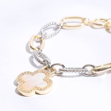 Wholesale Stone Paved Natural Stone Quatrefoil Link Bracelet