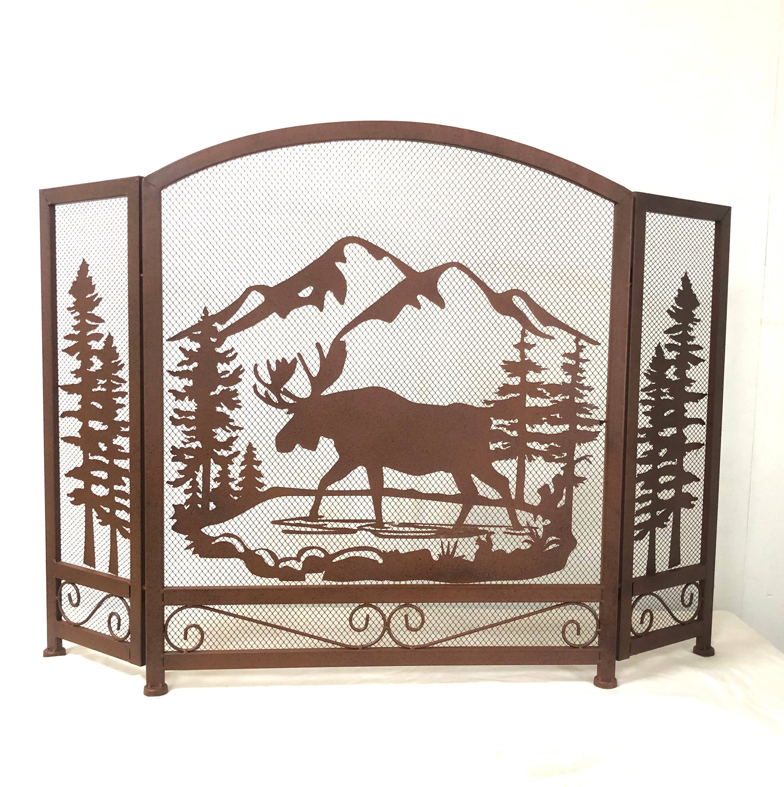Moose Country Forest Brown Metal Decorative Fireplace Screen