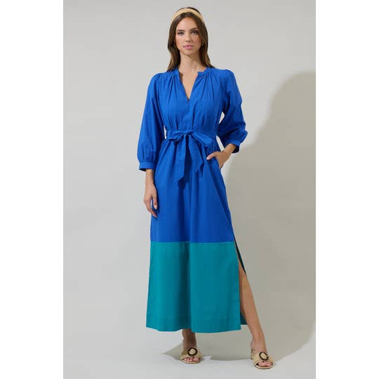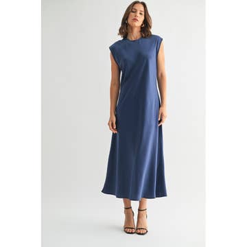 Round Neck Waist Tie Back Slit Midi Dress Model Height: 5'8" Wearing Size Small