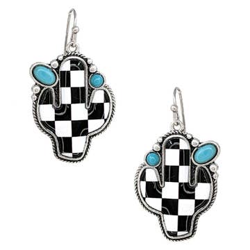 CHECKER THUNDER BOLT STUD EARRINGS SIZE : 0.5"X1.5"