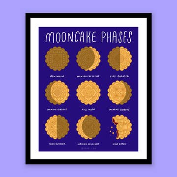 月餅 (mooncakes) are typically eaten during ä¸ç§‹ç¯€ (Mid-Autumn Festival) in celebration of the harvest, but you can celebrate Mid-Autumn Festival and your love for mooncakes all year round with this art print featuring the classic basic bitch moon phases with an Asian American twist. This print comes in multiple sizes, so you can find the perfect one that fits your college dorm room, office, bedroom, living room or even in your kitchen. It also makes a great gift for friends or family! Ran out of walls space? This design is also available as a sticker sheet! 🥮 8x10 in 🥮 Photo lab print quality 🥮 Premium thick cardstock 🥮 Matte finish 🥮 Frame not included