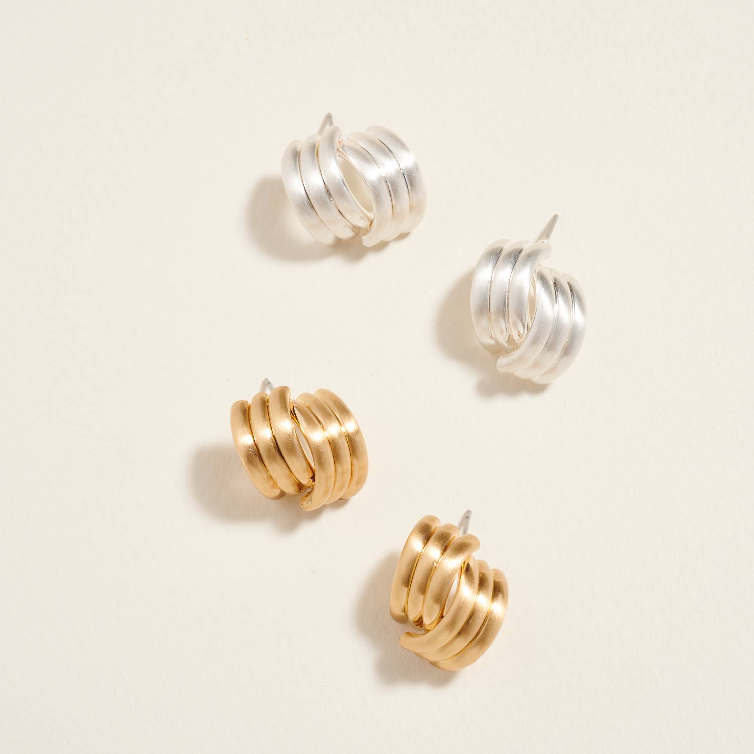 Sleek and stylish, these lightweight metal post earrings feature a ribbed textured design for a contemporary look. Perfect for everyday wear or adding a subtle statement to any outfit. Length: 1" Post back