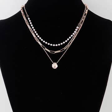 Wholesale Triple Layer Pearl and Chain Link Necklace