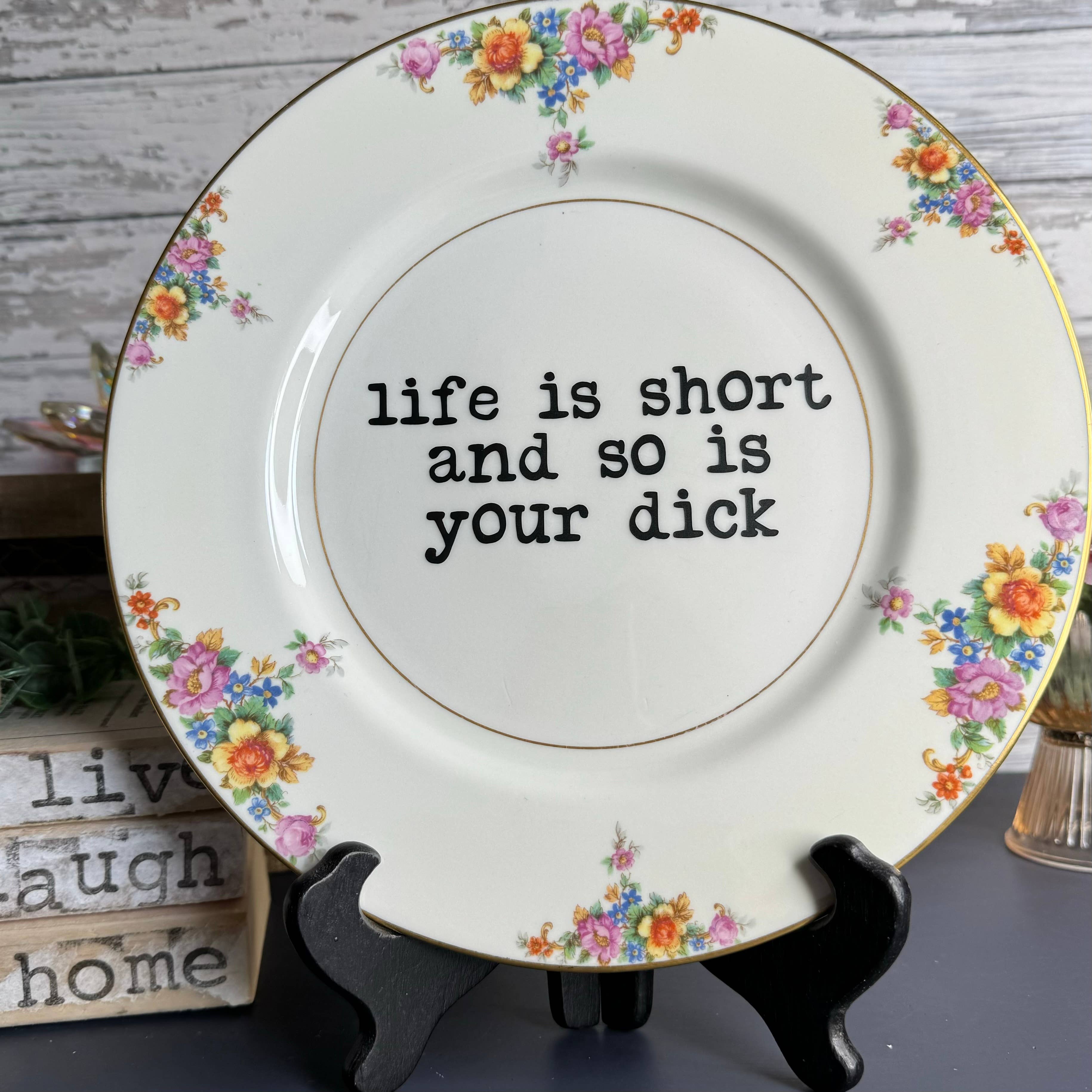 PLEASE NOTE: The product photo shows a sample plate. The delivered product will be the exact text design on a different unique plate from our collection, if not the plate in the product photo. Our sassy plates are great for every occasion. They are great gifts for everyone you know, with a sense of humor that is. These are definitely not your grandmas china. Custom sayings are available! Due to age of plates, you may see some scratches or marks, but it definitely adds character. The plates are for decoration ONLY. Do not wash (I promise they're clean) or put in the microwave. Not for daily use or food. Plates sizing ranges from 6-10 inches approx