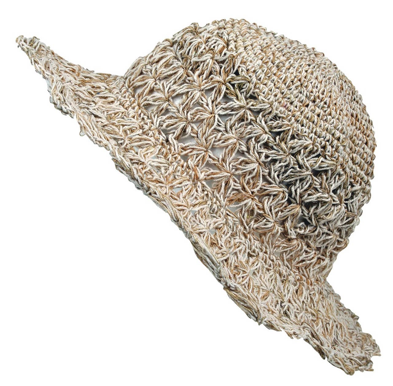 This artisanal hemp sun hat showcases exquisite Nepalese craftsmanship with its intricate hand-crocheted web pattern. The flexible brim allows customizable sun protection, while a hidden pocket in the interior crown offers secure storage. Made from durable natural hemp fiber in versatile beige tones, this breathable hat combines eco-conscious style with practical functionality for beach days, gardening, or everyday wear.