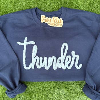 Custom Monotone Embroidered Spirit Sweatshirt Please leave your town/team name/school, mascot, school/team colors and sweatshirt color from the color chart in the personalization box. See below... Please keep in mind this is a monotone embroidery, therefore, the thread color of the largest letters will be the same color as your sweatshirt. If you do not want it monotone please indicate that in the personalization box and choose two thread colors that are a different color than you sweatshirt color choice. Design is embroidered on a Hanes brand unisex sweatshirt in Texas. Each of our products are made to order, you will receive an email confirmation and we will begin processing your order and will have it ready within 7 business days. Once we ship your order you will receive an email with tracking. If you have any questions, please feel free to reach out to us.